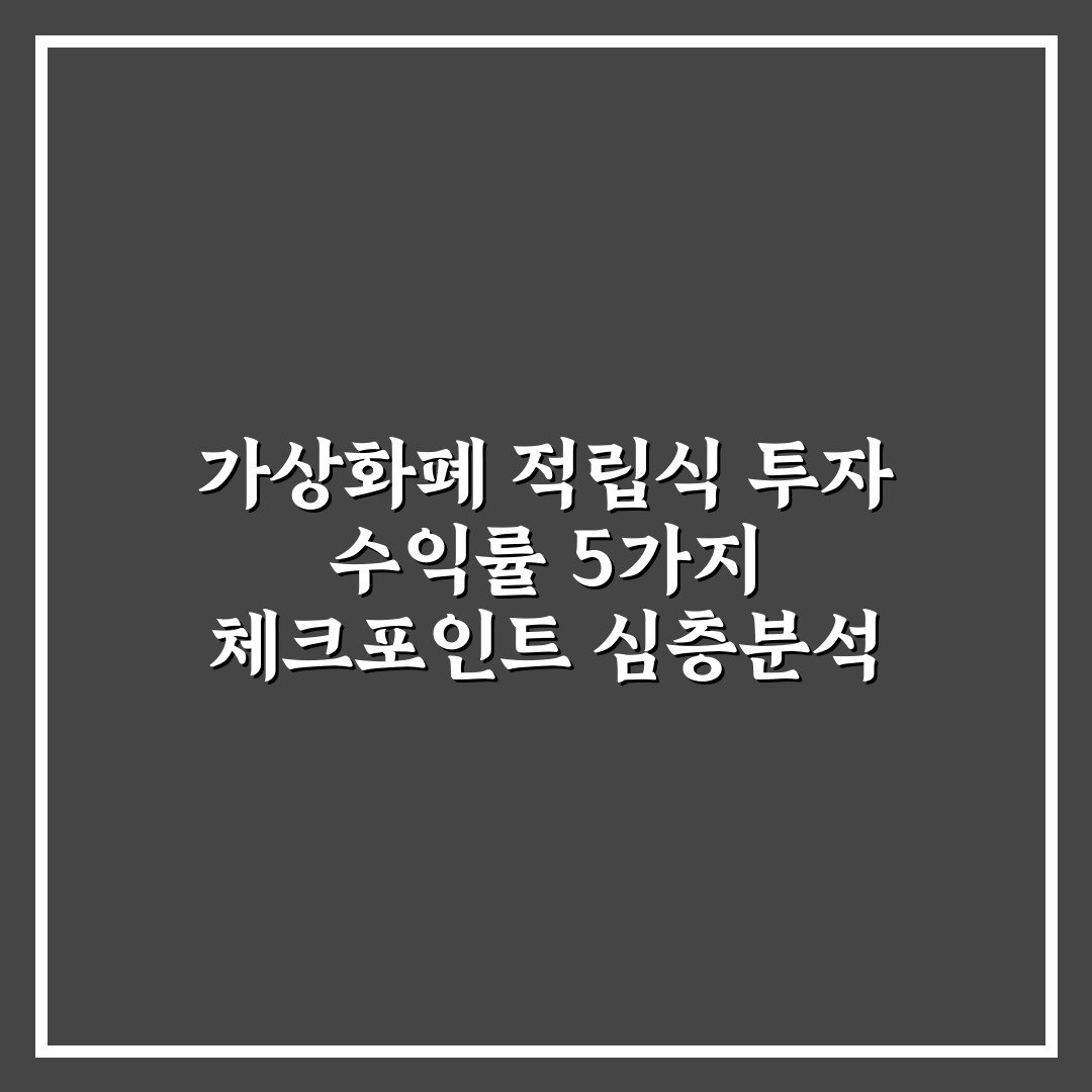 가상화폐 적립식 투자 수익률 5가지 체크포인트 심층분석 2026년 04월 15일 작성자: 인포 가상화폐 적립식 투자 수익률을 높이기 위한 5가지 핵심 체크포인트를 분석해 투자 전략 수립에 도움을 드립니다