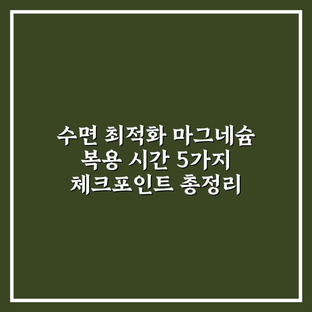 수면 최적화 마그네슘 복용 시간 5가지 체크포인트 총정리 2026년 03월 23일 작성자: 인포 수면 최적화 마그네슘 복용 시간을 효과적으로 조절하는 5가지 핵심 체크포인트를 통해 숙면을 돕는 방법을 알아보세요