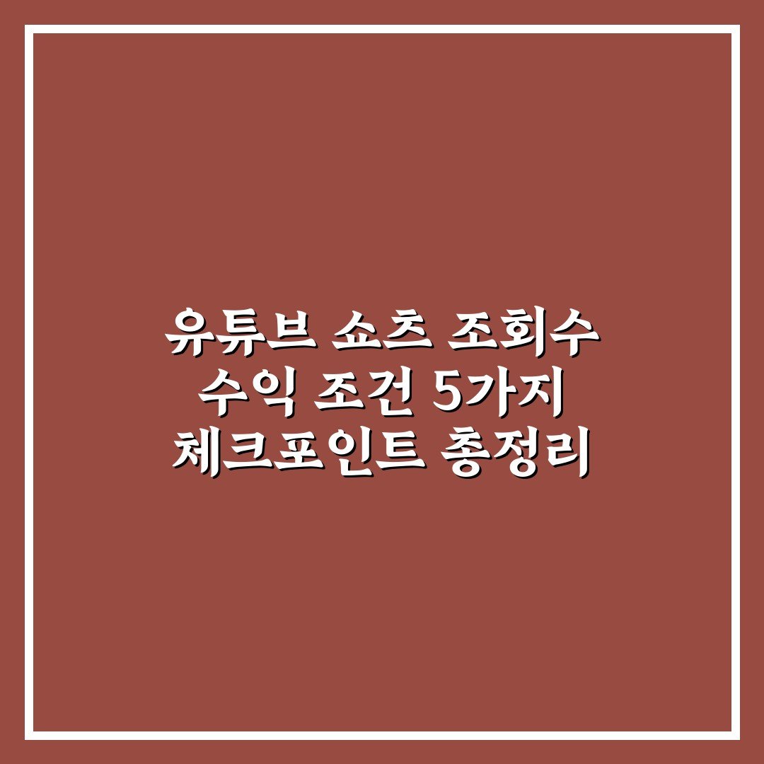 유튜브 쇼츠 조회수 수익 조건 5가지 체크포인트 총정리 2026년 03월 26일 작성자: 인포 유튜브 쇼츠 조회수 수익 조건을 자세히 살펴보고 꼭 확인해야 할 5가지 핵심 체크포인트를 한눈에 이해할 수 있습니다