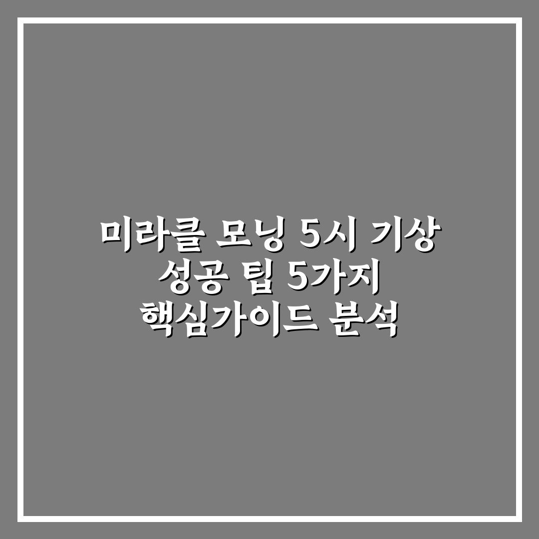 미라클 모닝 5시 기상 성공 팁 5가지 핵심가이드 분석 2026년 03월 26일 작성자: 인포 미라클 모닝 5시 기상 성공 팁을 통해 꾸준한 아침 습관 형성 방법과 실천 전략을 알아보고 효과적인 시작을 위한 핵심 가이드를 제공합니다