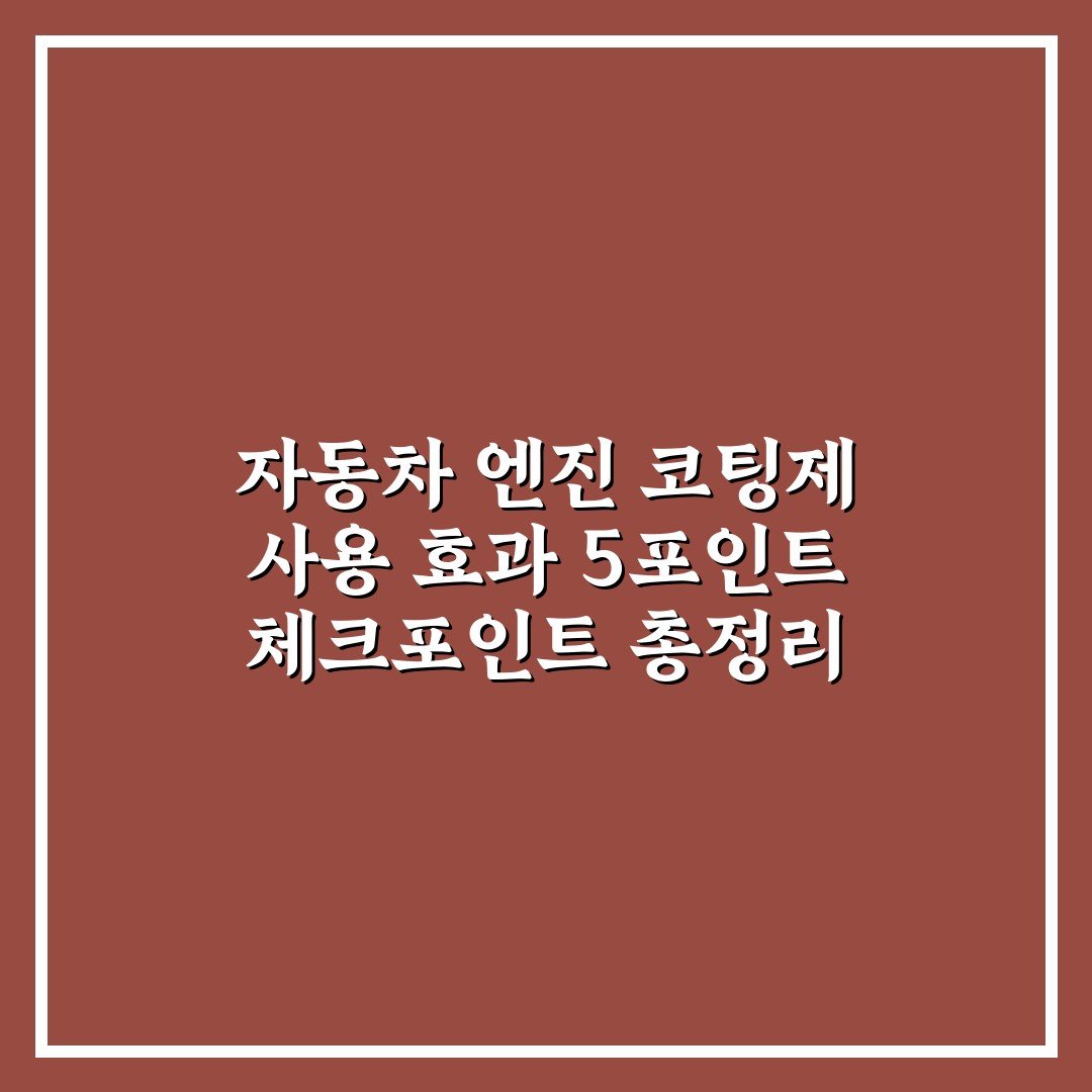 자동차 엔진 코팅제 사용 효과를 5가지 핵심 포인트로 정리해 엔진 보호와 성능 향상에 도움이 되는 정보를 제공합니다.