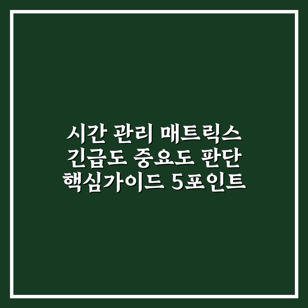 시간 관리 매트릭스 긴급도 중요도 판단 핵심가이드 5포인트 2026년 04월 14일 작성자: 인포 시간 관리 매트릭스 긴급도 중요도 기준과 핵심 판단법을 5가지 포인트로 정리해 효과적인 시간 활용법을 익힐 수 있습니다