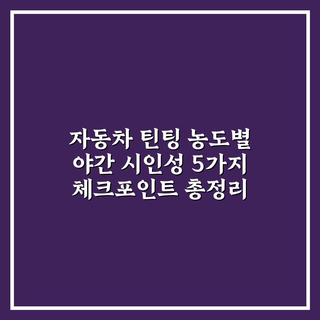 자동차 틴팅 농도별 야간 시인성 5가지 체크포인트 총정리 2026년 03월 24일 작성자: 인포 자동차 틴팅 농도별 야간 시인성 비교를 통해 각 농도가 주는 시야 차이를 이해하고 안전한 운전을 위한 핵심 체크포인트를 확인하세요
