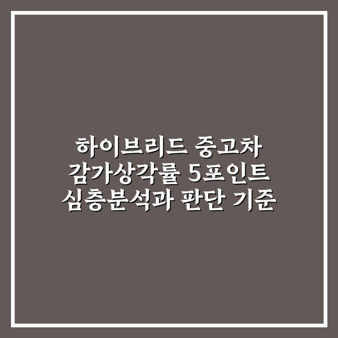 하이브리드 중고차 감가상각률 5포인트 심층분석과 판단 기준 2026년 03월 25일 작성자: 인포 하이브리드 중고차 감가상각률을 5가지 핵심 포인트로 분석해 구매와 판매 시 판단 기준을 명확히 제시합니다