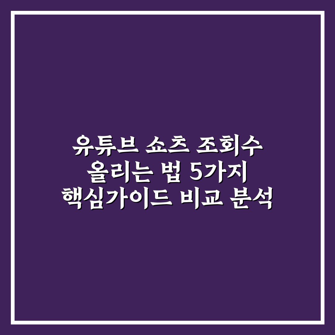 유튜브 쇼츠 조회수 올리는 법 5가지 핵심가이드 비교 분석 2026년 03월 27일 작성자: 인포 유튜브 쇼츠 조회수 올리는 법을 다각도로 비교 분석해 효과적인 전략과 실전 팁을 한눈에 확인할 수 있습니다
