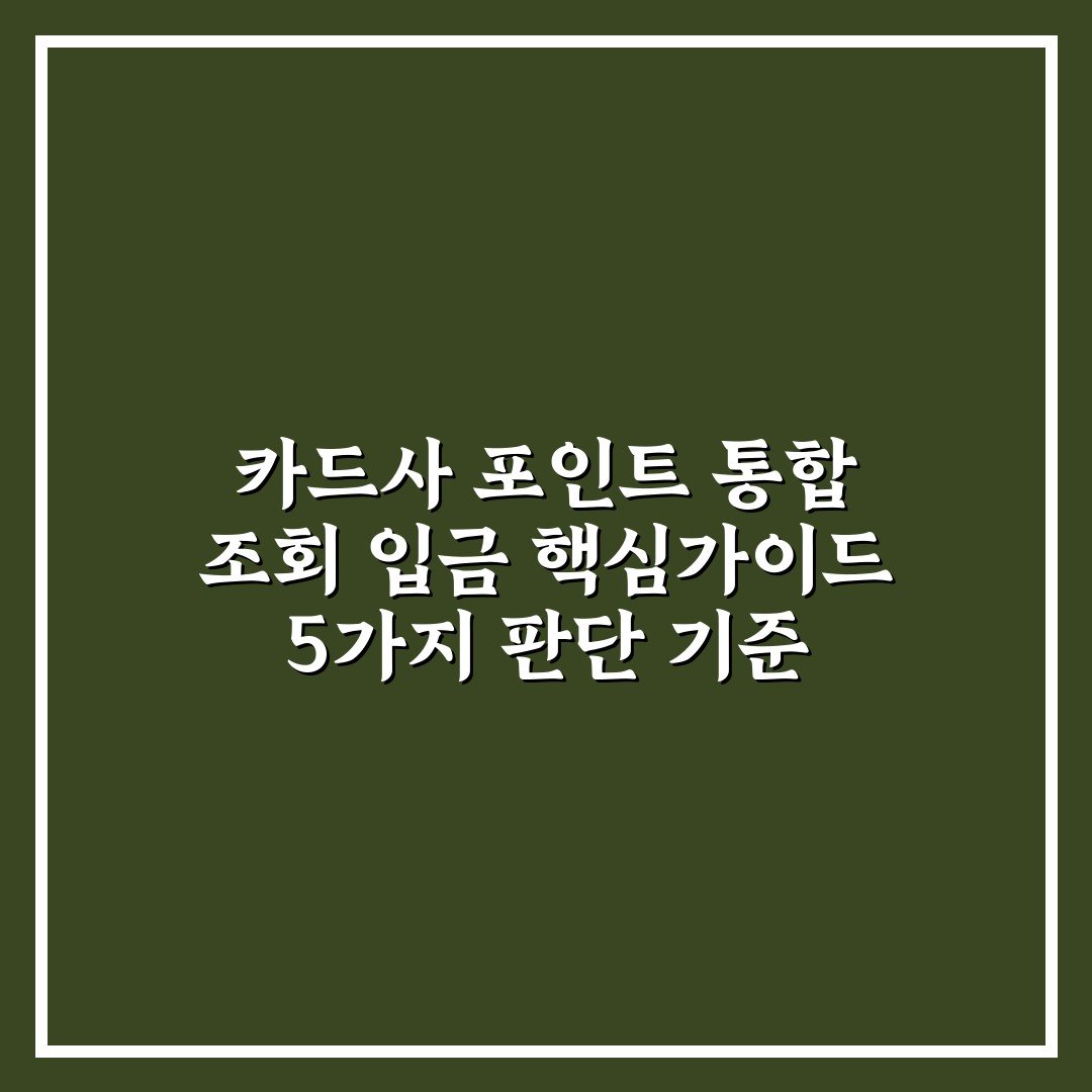 카드사 포인트 통합 조회 입금 핵심가이드 5가지 판단 기준 2026년 03월 26일 작성자: 인포 카드사 포인트 통합 조회 입금 방법과 절차를 쉽고 정확하게 안내하며, 효율적인 포인트 활용을 위한 핵심 판단 기준을 제공합니다.