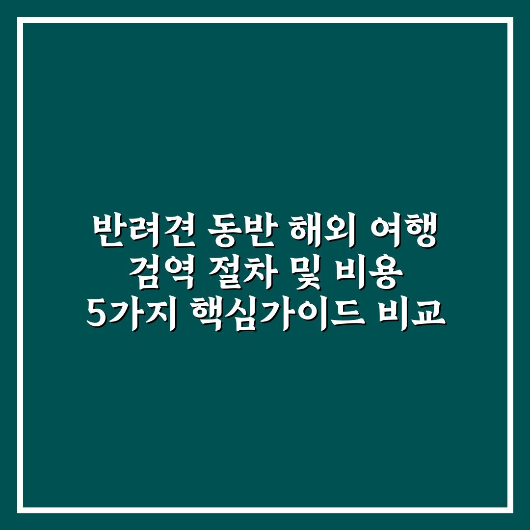 반려견 동반 해외 여행 검역 절차 및 비용에 대해 주요 국가별 5가지 핵심 가이드를 비교해 쉽고 정확한 준비 방법을 안내합니다