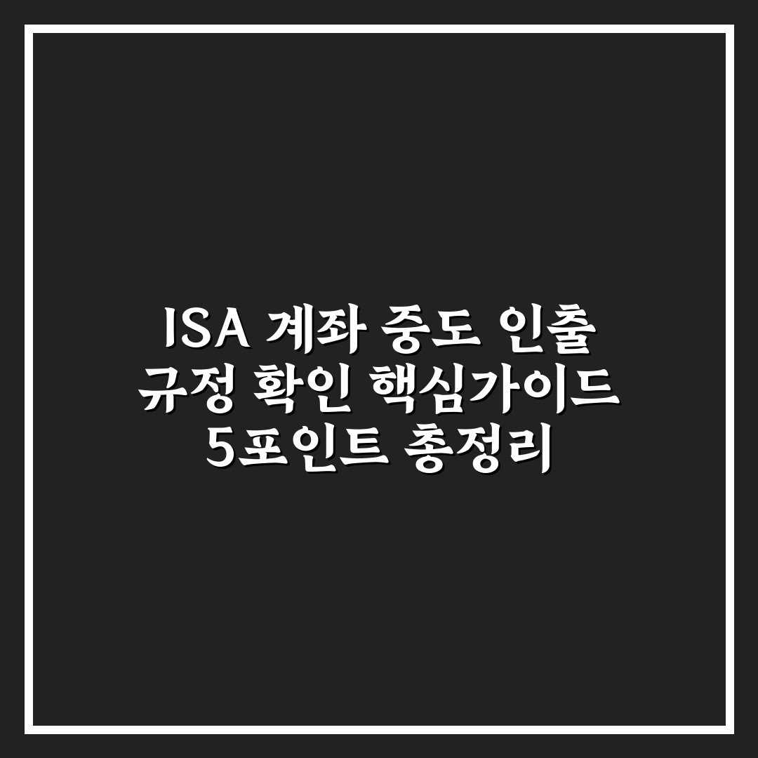• ISA 계좌 중도 인출 규정 확인 핵심가이드 5포인트 총정리